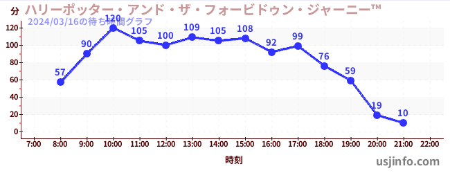 • ハリーポッター・アンド・ザ・フォービドゥン・ジャーニー™$B$N(B2024年03月16日の待ち時間