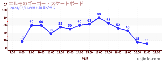 • エルモのゴーゴー・スケートボード$B$N(B2024年03月16日の待ち時間