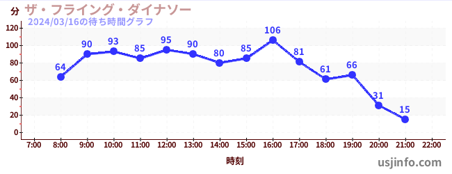 • ザ・フライング・ダイナソー$B$N(B2024年03月16日の待ち時間