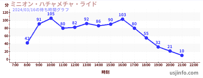 • ミニオン・ハチャメチャ・ライド$B$N(B2024年03月16日の待ち時間