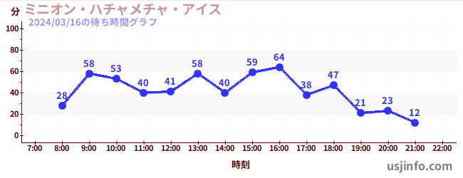 • ミニオン・ハチャメチャ・アイス$B$N(B2024年03月16日の待ち時間