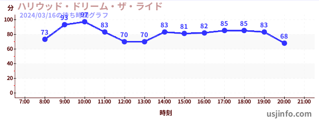 • ハリウッド・ドリーム・ザ・ライド$B$N(B2024年03月16日の待ち時間