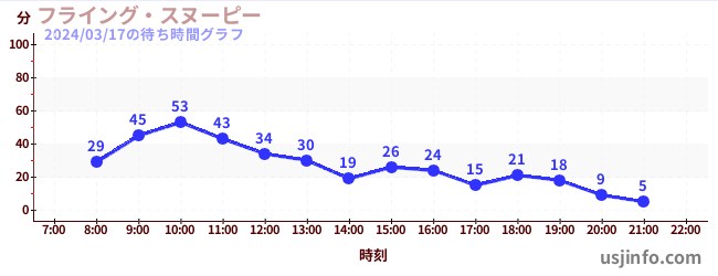 • フライング・スヌーピー$B$N(B2024年03月17日の待ち時間
