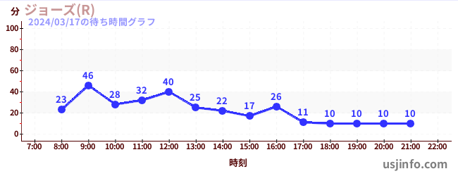 • ジョーズ(R)$B$N(B2024年03月17日の待ち時間