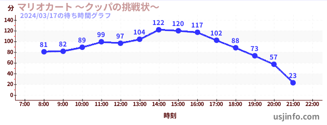 • マリオカート ~クッパの挑戦状~$B$N(B2024年03月17日の待ち時間