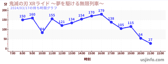 • 鬼滅の刃 XRライド$B$N(B2024年03月17日の待ち時間