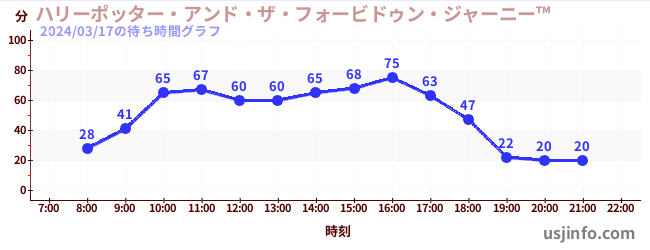 • ハリーポッター・アンド・ザ・フォービドゥン・ジャーニー™$B$N(B2024年03月17日の待ち時間