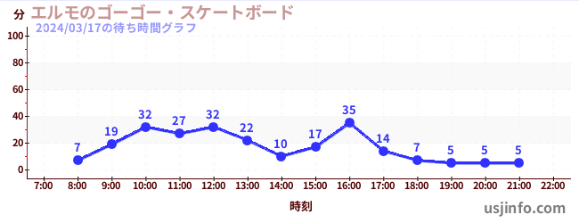 • エルモのゴーゴー・スケートボード$B$N(B2024年03月17日の待ち時間