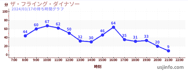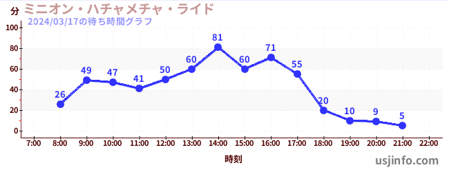 • ミニオン・ハチャメチャ・ライド$B$N(B2024年03月17日の待ち時間