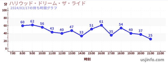 • ハリウッド・ドリーム・ザ・ライド$B$N(B2024年03月17日の待ち時間