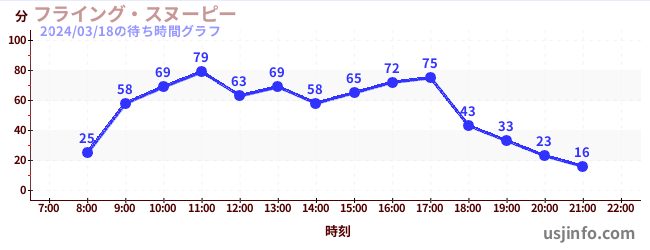 • フライング・スヌーピー$B$N(B2024年03月18日の待ち時間