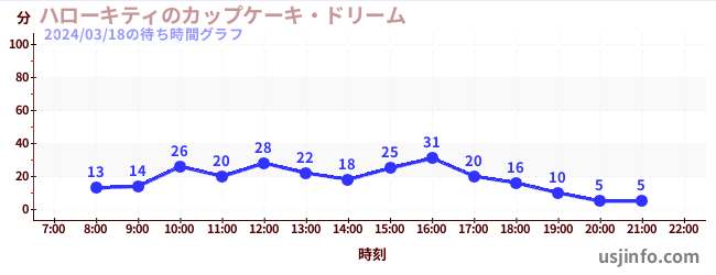 • ハローキティのカップケーキ・ドリーム$B$N(B2024年03月18日の待ち時間