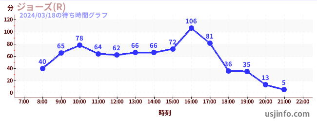 • ジョーズ(R)$B$N(B2024年03月18日の待ち時間