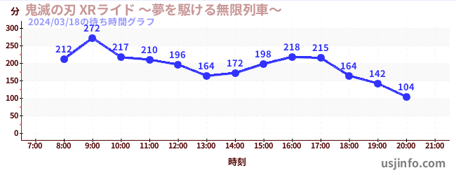 • 鬼滅の刃 XRライド$B$N(B2024年03月18日の待ち時間