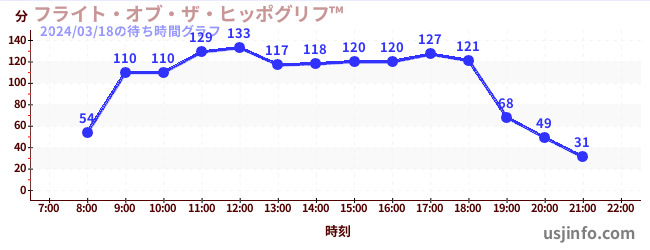 • フライト・オブ・ザ・ヒッポグリフ™$B$N(B2024年03月18日の待ち時間