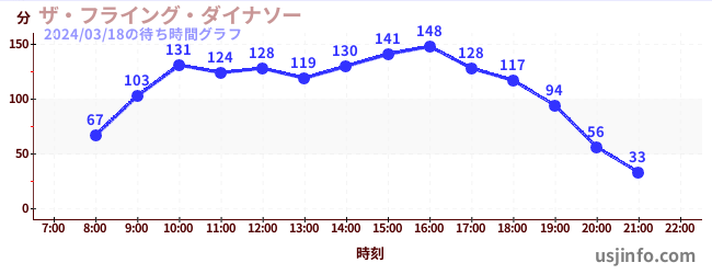 • ザ・フライング・ダイナソー$B$N(B2024年03月18日の待ち時間