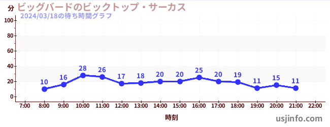 • ビッグバードのビックトップ・サーカス$B$N(B2024年03月18日の待ち時間