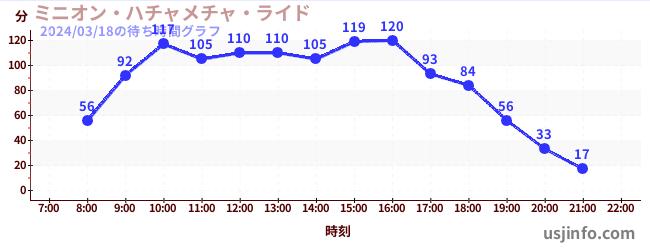 • ミニオン・ハチャメチャ・ライド$B$N(B2024年03月18日の待ち時間