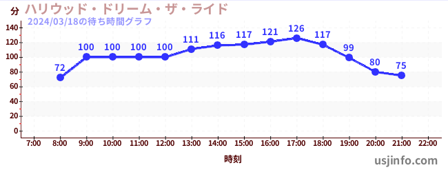 • ハリウッド・ドリーム・ザ・ライド$B$N(B2024年03月18日の待ち時間