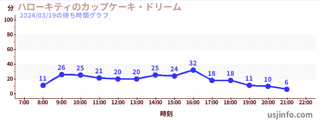 • ハローキティのカップケーキ・ドリーム$B$N(B2024年03月19日の待ち時間