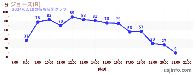 • ジョーズ(R)$B$N(B2024年03月19日の待ち時間