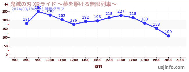 • 鬼滅の刃 XRライド$B$N(B2024年03月19日の待ち時間