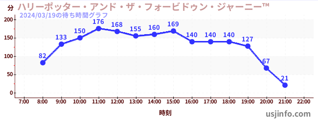 • ハリーポッター・アンド・ザ・フォービドゥン・ジャーニー™$B$N(B2024年03月19日の待ち時間