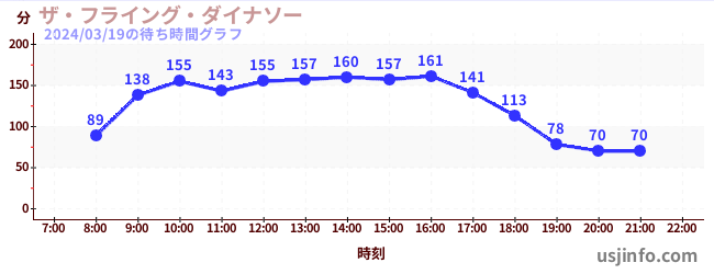 • ザ・フライング・ダイナソー$B$N(B2024年03月19日の待ち時間