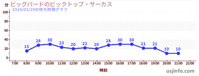 • ビッグバードのビックトップ・サーカス$B$N(B2024年03月19日の待ち時間