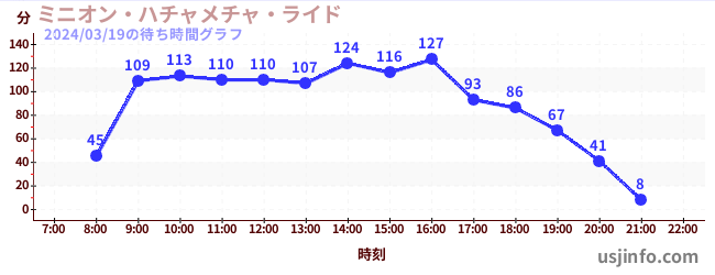 • ミニオン・ハチャメチャ・ライド$B$N(B2024年03月19日の待ち時間