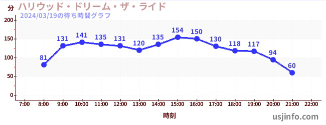 • ハリウッド・ドリーム・ザ・ライド$B$N(B2024年03月19日の待ち時間