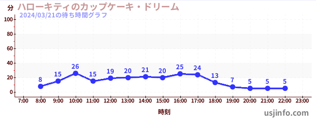 • ハローキティのカップケーキ・ドリーム$B$N(B2024年03月21日の待ち時間