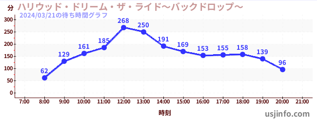 • ハリウッド・ドリーム・ザ・ライド〜バックドロップ〜$B$N(B2024年03月21日の待ち時間