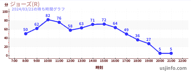 • ジョーズ(R)$B$N(B2024年03月21日の待ち時間