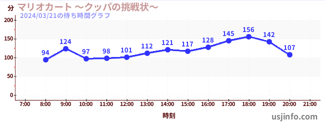 • マリオカート ~クッパの挑戦状~$B$N(B2024年03月21日の待ち時間