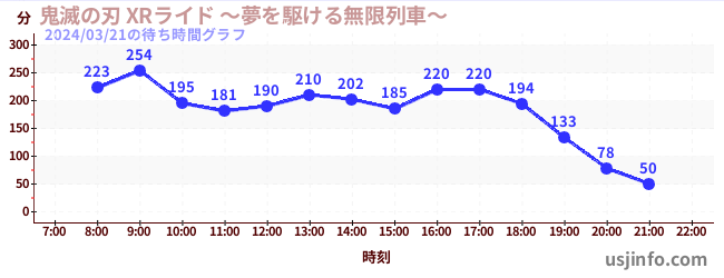 • 鬼滅の刃 XRライド$B$N(B2024年03月21日の待ち時間