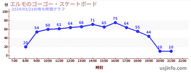 • エルモのゴーゴー・スケートボード$B$N(B2024年03月21日の待ち時間