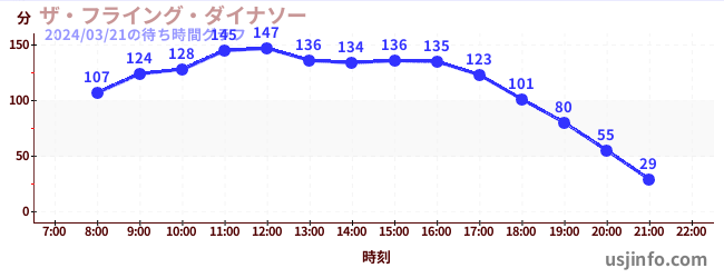 • ザ・フライング・ダイナソー$B$N(B2024年03月21日の待ち時間