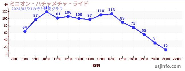 • ミニオン・ハチャメチャ・ライド$B$N(B2024年03月21日の待ち時間