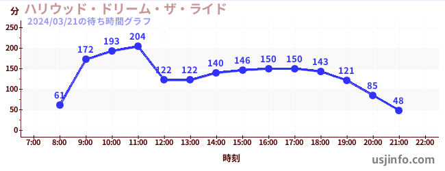 • ハリウッド・ドリーム・ザ・ライド$B$N(B2024年03月21日の待ち時間