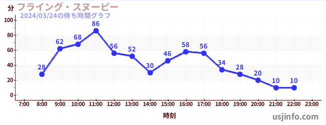 • フライング・スヌーピー$B$N(B2024年03月24日の待ち時間