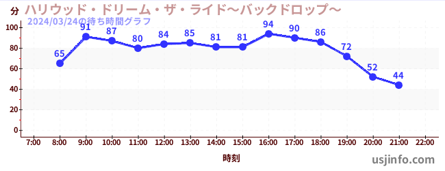 • ハリウッド・ドリーム・ザ・ライド〜バックドロップ〜$B$N(B2024年03月24日の待ち時間