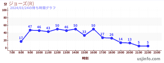 • ジョーズ(R)$B$N(B2024年03月24日の待ち時間