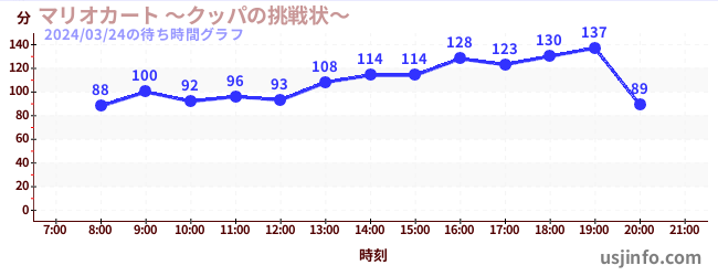 • マリオカート ~クッパの挑戦状~$B$N(B2024年03月24日の待ち時間