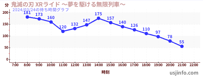 • 鬼滅の刃 XRライド$B$N(B2024年03月24日の待ち時間
