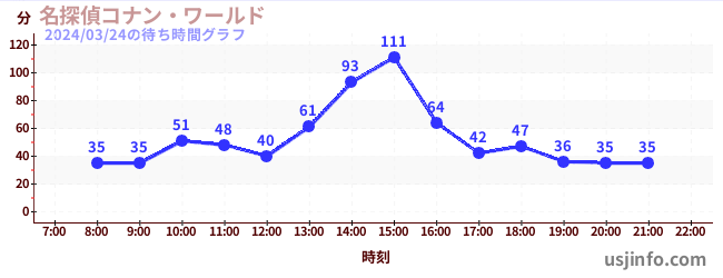 • 名探偵コナン・ワールド$B$N(B2024年03月24日の待ち時間
