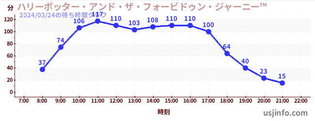 • ハリーポッター・アンド・ザ・フォービドゥン・ジャーニー™$B$N(B2024年03月24日の待ち時間