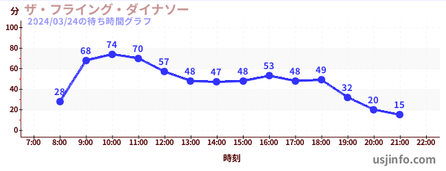 • ザ・フライング・ダイナソー$B$N(B2024年03月24日の待ち時間