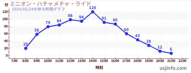• ミニオン・ハチャメチャ・ライド$B$N(B2024年03月24日の待ち時間
