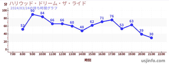 • ハリウッド・ドリーム・ザ・ライド$B$N(B2024年03月24日の待ち時間